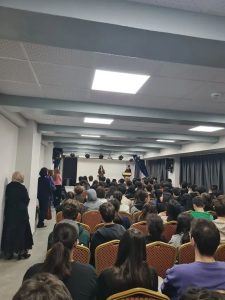 Elif Uysal gave a speech to the students at Hacı Ömer Tarman Anatolian High School.